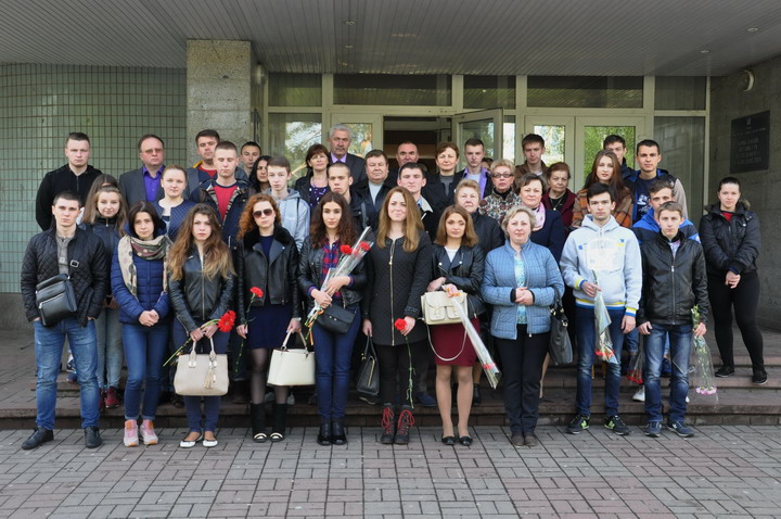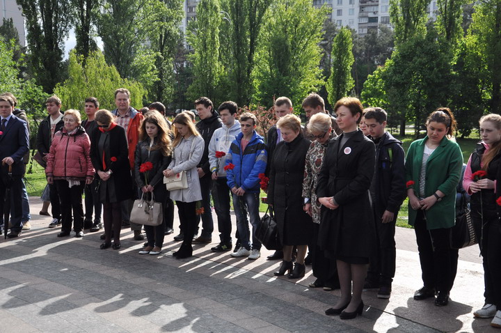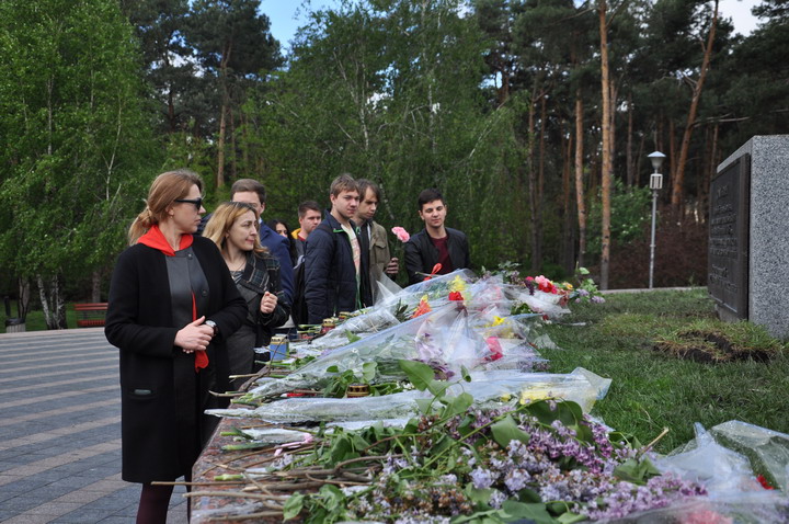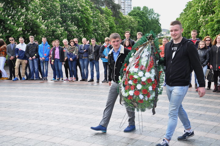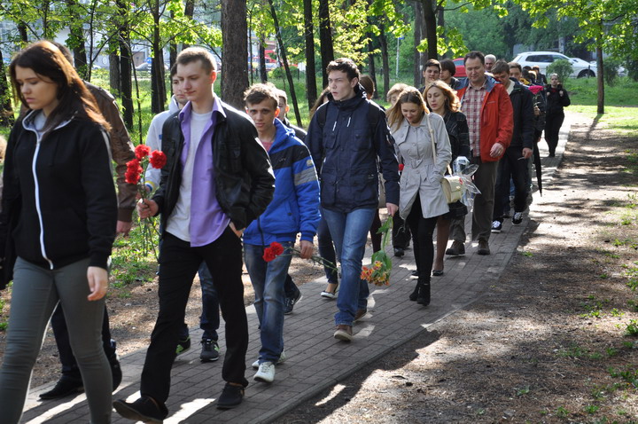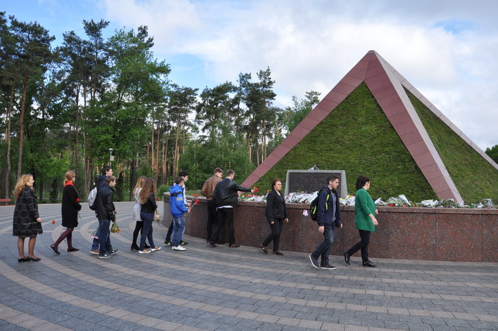 May 8th on the Day of Memory and Reconciliation faculty representatives and student bands honored those killed in World War II, a minute of silence and laid flowers to Immortality Mound in the park "Victory".