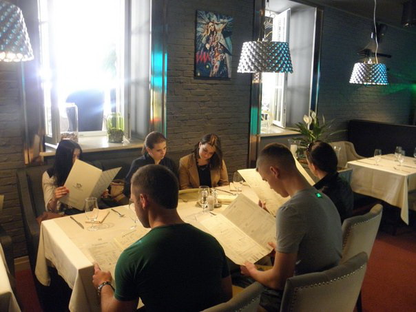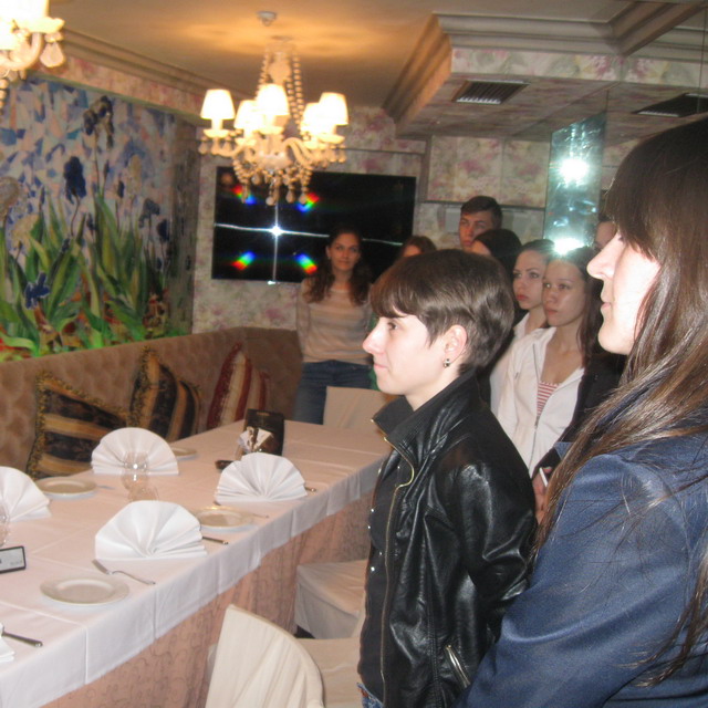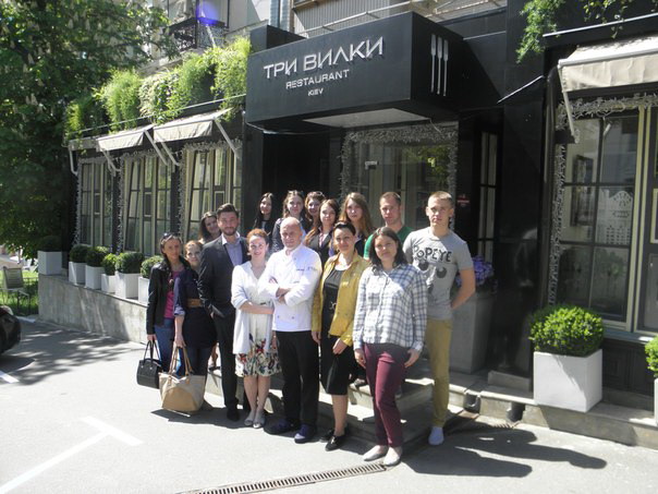 As part of a social project under the guidance of senior lecturer in hotel and restaurant business Kyiv University of Tourism, Economics and Law Vasilenko Elena and support of the famous restaurateur and TV program "Master Chef" Nikolay Tishchenko organized tours for students of "Hotel and restaurant business" to the top institutions of restaurant facilities of Kyiv: "Turgeneff", "Velour", "Three Forks".