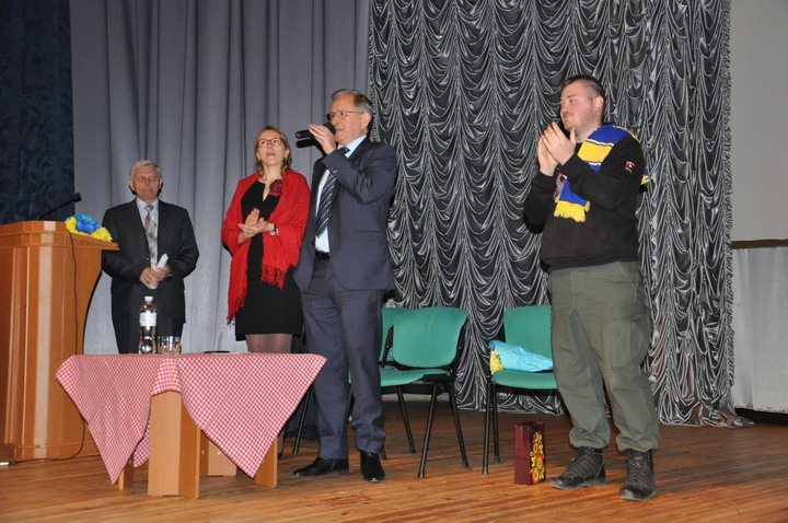 October 12 on the plan of the department and the initiative of Economics and Law University in the auditorium held an educational event dedicated to the Day of Defender of Ukraine, which invited Ivan Metelica. Done viewing and discussion of the documentary film "Airport". Welcoming remarks were made by the Rector of the University, Doctor of Education, Professor Fedorchenko V.K.; Doctor of History, Professor Mukovskyy I.T.; Director of Economics and Law Martyniuk I.A.