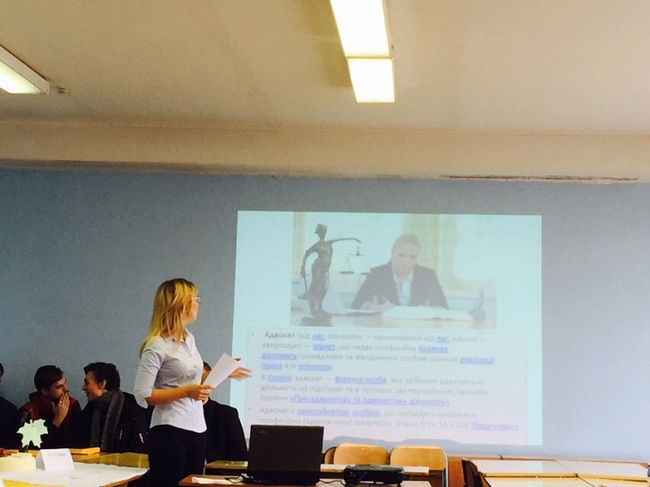 Презентація професії адвоката та слідчого студентами магістратури Сидорякіним Ігорем та Шевченко Мариною