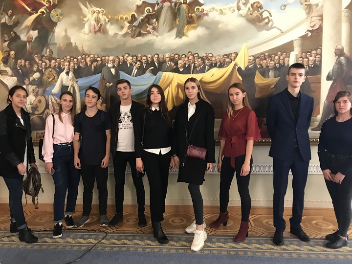 Особливу увагу під час екскурсії було приділено картині О. Кулакова «Державотворення», на якій зображені депутати та історичні постаті, які брали участь у державотворенні на різних етапах боротьби за незалежність України та державний символ – великий синьо-жовтий прапор у центрі картини.
